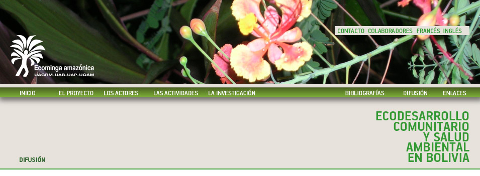 El proyecto Ecominga amazónica integra actividades de difusión, las cuales pretenden informar al público de las iniciativas emprendidas por los líderes comunitarios comprometidos con el proyecto y de las realidades sociales y ambientales de la Amazonía boliviana. Dos películas fueron así realizadas a lo largo del proyecto: